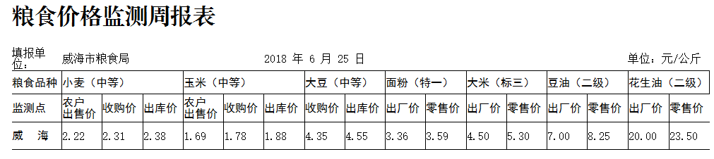 粮油市场价格监测表6.25