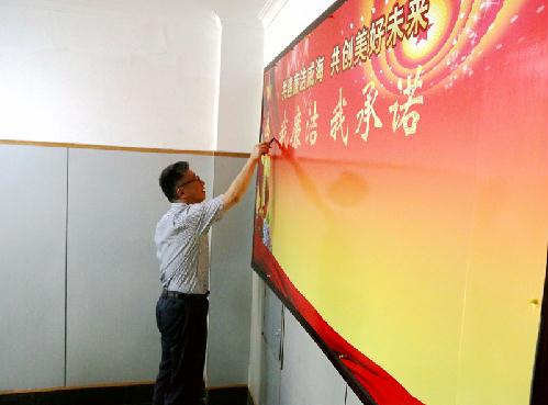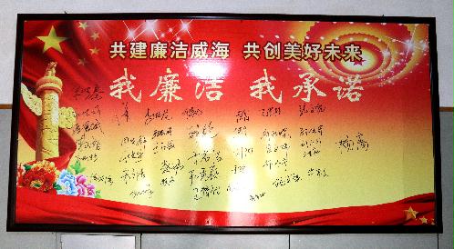 讲座结束后,粮食系统与会人员全部在“共建廉洁威海 共创美好未来”廉政看板上签字承诺。